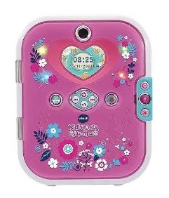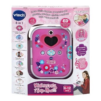 La copertina si illumina all’apertura, con effetti luminosi sincronizzati con la musica. Lettore MP3 per ascoltare le tue canzoni preferite (tramite una scheda micro SD non inclusa). Grazie ai memo vocale, puoi registrare messaggi vocali nel diario e aggiungere immagini. Con schermo a colori, doppia fotocamera per scattare selfie con gli amici e una vera tastiera per inserire tutti i segretti. Grazie al riconoscimento facciale, il KidiSecrets riconosce la proprietaria e il diario si apre solo se è con lei!