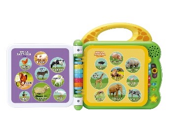 12 pagine educative, plastificate e illustrate, con sensori per selezionare le tante immagini e fare numerose scoperte. Il bambino impara i nomi degli animali della fattoria, della savana, del deserto, delle regioni polari, degli oceani e molto altro.