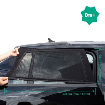 Espandibile fino a 110 cm di larghezza e 60 cm di altezza. Protegge dalla luce e riduce il calore. Rimane in posizione quando si aprono i finestrini e protegge dagli insetti. Borsa da trasporto inclusa.