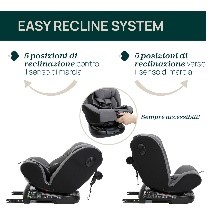 Seggiolino auto di lunga durata che accompagna il bambino dalla nascita fino a circa 12 anni (omologazione ECE R129/03: 40-150 cm). Dotato di sistema di rotazione a 360° per far sedere facilmente e velocemente il bambino.