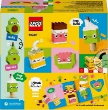 I bambini utilizzano l’assortimento colorato e accattivante di mattoncini e pezzi speciali, come occhi, bocche e vari elementi decorativi, per costruire i 4 simpatici alimenti creativi: un dolcetto, un gelato, un avocado e un taco. Il divertimento creativo continua quando i bambini mescolano i mattoncini per ricostruire i modelli in una torta con confettini, bubble-tea, una pera e un panino. Man mano che i bambini acquisiscono maggiore sicurezza nelle proprie capacità di costruzione, possono seguire l’intuitiva guida alla costruzione per cambiare espressioni, forme o colori e creare nuovi alimenti, tra cui un gelato verde, un cartone di succo di frutta, una fetta di anguria, una barretta di cioccolato e un mega panino.