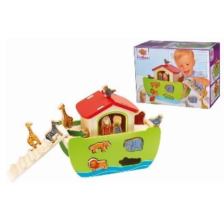 Arca di Noè in legno con formine degli animali. Misura 14 x 26 x 19 cm.