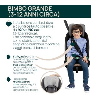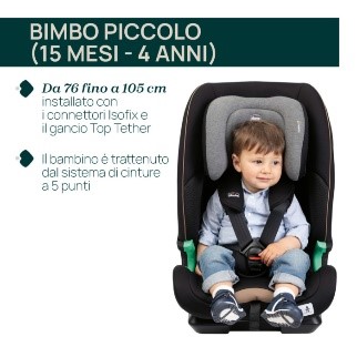 Il Seggiolino Auto Chicco Seat&Go è omologato secondo ECE R129/03 (i-Size) per bambini da 76 cm fino a 150 cm, da 15 mesi fino a circa 12 anni (solo in direzione del senso di marcia).