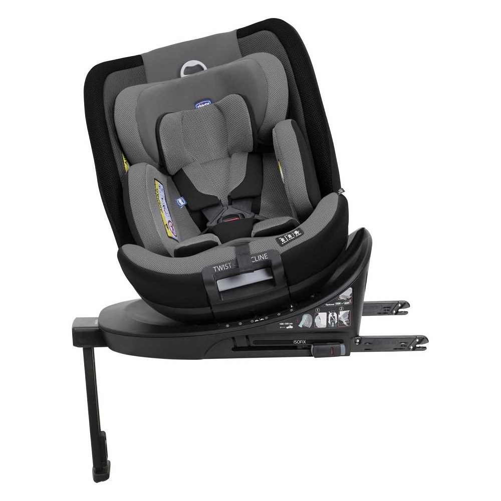 - SISTEMA TWIST-RECLINE: Il sistema Twist-Recline permette di ruotare il seggiolino e di reclinarlo in 3 posizioni diverse con la stessa maniglia posizionata frontalmente