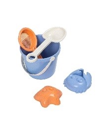 Questo set contiene 5 elementi essenziali per giocare con la sabbia e l'acqua in spiaggia: un secchiello, una paletta, un rastrello e 2 stampi, uno a forma di granchio e l'altro a forma di stella. Per i bambini a partire dai 18 mesi.