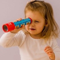 Basta avvicinarlo all'occhio e ruotarne l'estremità per creare un'infinita varietà di bellissimi motivi. Un giocattolo semplice e attraente che piacerà sia agli adulti che ai bambini. Fatto di carta e plastica.