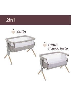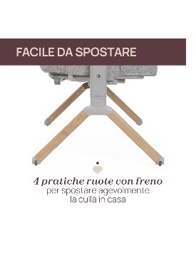 La culla può essere regolata su 11 livelli di altezza per adattarsi a diversi letti. Un innovativo sistema di installazione con scorrimento laterale consente di montare la culla anche su letti con cassetti. Grazie alle 4 ruote, i genitori possono spostare la culla in diverse stanze della casa. Dispone di due tasche diverse per riporre oggetti utili per la cura del bambino e per l'allattamento (biberon, ciucci, salviette e altro ancora!). Quattro finestre in rete per garantire una migliore circolazione dell'aria.