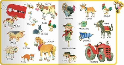 100 parole semplici, divise per gli argomenti più amati dai bambini: la fattoria, le macchine, il cibo, le fiabe, il mare. Saranno la base per comporre le prime frasi e formulare le prime domande, oltre che un aiuto ai genitori nell'intrattenimento del bambino e uno stimolo all'apprendimento.