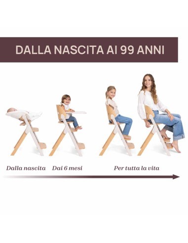Una sedia evolutiva pensata per accompagnarti tutta la vita, dalla nascita fino all’età adulta. Con il suo design modulare, può trasformarsi facilmente da sdraietta a seggiolone, da sedia per bambino a sedia per adulto, senza bisogno di attrezzi.