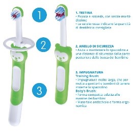 Comprende Training Brush, Baby's Brush e anello di sicurezza.