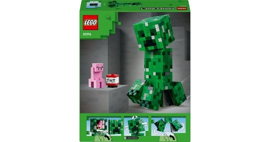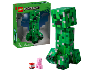 Questo Creeper è sempre pronto all’azione, sia che si aggiri nel mondo di Minecraft® o sia in mostra nella tua stanza. Contiene anche una sorpresa nascosta. Stacca la parte anteriore della testa del Creeper per rivelare un mini Creeper della prima versione e un elemento dinamite. Proprio quello che ti serve per un’avventura Minecraft esplosiva!