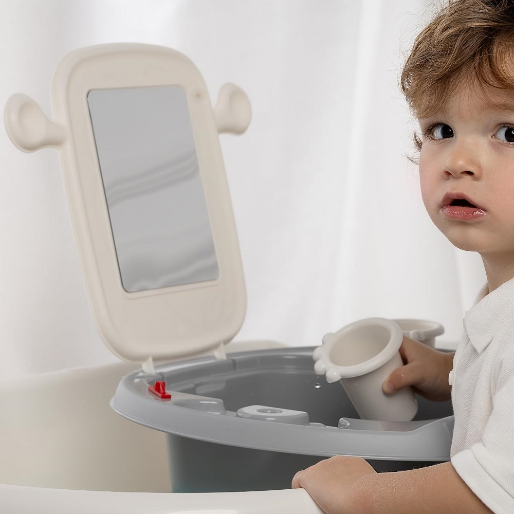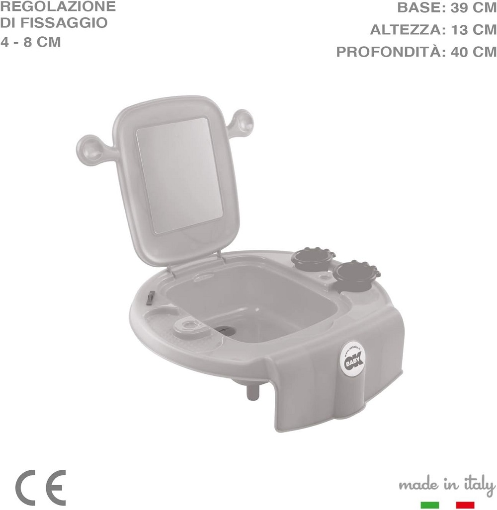 Progettato per bambini dai 15 ai 36 mesi, si adatta facilmente alla maggior parte delle vasche da bagno e dei bidet grazie a un sistema di fissaggio regolabile. Il suo design compatto, unito alla struttura robusta e allo specchio infrangibile, lo rende ideale per l’uso domestico.