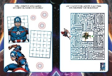 Volume dedicato agli Avengers con 100 pagine ricche di attività: labirinti, quiz, trova l'intruso, logica e matematica, puzzle, unisci i puntini, rebus, giochi di differenze, cruciverba e tantissime illustrazioni in bianco e nero tutte da colorare. I testi sono semplici e scritti in stampatello maiuscolo così da agevolare anche una lettura autonoma. Le pagine sono coloratissime e con una grafica accattivante. In fondo al libro, anche due fogli di adesivi che il bambino può attaccare dove preferisce.