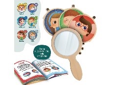 Il bambino potrà ruotare queste faccine e, guardandosi nello specchio, ricreare con il proprio viso l’emozione rappresentata. Questo gioco stimolante lo aiuterà a riconoscere ed esprimere le emozioni, rafforzando contemporaneamente la consapevolezza del sé. In più, il kit include un esclusivo libro delle emozioni illustrato con allegre filastrocche.