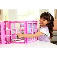Include 2 appendiabiti, oltre 20 scomparti e molto altro. Con questo playset guardaroba, le bambine possono creare infiniti stili e storie per Barbie. Barbie può curiosare tra gli appendiabiti per trovare i suoi outfit migliori per la giornata. Apri il tavolo e scopri lo specchio a forma di cuore!