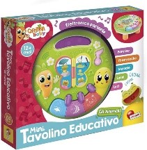 Un coloratissimo tavolino multiattività, ricco di funzioni tutte da scoprire! Premendo i tasti e sfogliando le pagine del libro, il bambino si divertirà ad ascoltare i versi degli animali, dolci melodie e filastrocche. Questo gioco educativo, pensato e studiato per la prima infanzia, stimola la percezione sensoriale, la coordinazione occhio-mano, l’immaginazione e il linguaggio.