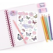 Scatena il suo pieno potenziale con questo elegante set di diari completo che include un album da disegno a forma di farfalla da 200 pagine, 6 matite colorate, 2 gomme, un temperamatite e un foglio di adesivi.