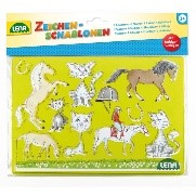 Questo set include due stencil di alta qualità, ciascuno delle dimensioni di 26 x 19 cm, con motivi dettagliati di cani e cavalli. Ideale per bambini a partire dai 3 anni, permette di disegnare facilmente figure incantevoli da colorare e personalizzare.