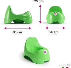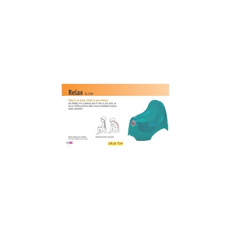 Relax vasino per bambini con seduta ergonomica e schienale rialzato. Struttura unica dal design semplice ma funzionale. Parte frontale leggermente rialzata per ridurre al minimo gli schizzi di pipì dei maschietti.