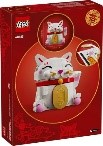 Celebra la tradizione con un elemento decorativo che porta fortuna e prosperità in ogni casa. Questo set costruibile del Gatto della fortuna LEGO® è uno straordinario display per ogni stanza e porterà sicuramente tanta fortuna al suo proprietario! Questo modello di gatto è un regalo divertente per i bambini o per chiunque celebri la Festa di Primavera. Assembla i dettagli e aggiungi gli occhi sorridenti, le vibrisse, le guance rosse, le zampe e la coda del gatto. Scegli poi di decorare il pannello sulla pancia con la moneta d’oro o con l’augurio di buona fortuna.