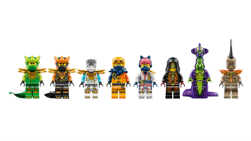 8 MINIFIGURE NINJAGO®: il giocattolo d’avventura per bambini contiene Zane, Sora, Arin, Lloyd Forma Drago, Cole Forma Drago, il Mostro Acido, il Mostro della Terra e il Leader dei lealisti per un gioco di fantasia ricco di azione.