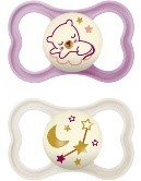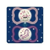Il fantastico succhietto di Mam che si illumina al buio: facile da trovare grazie al bottone luminescente! Confezione da 2 pezzi, consigliato dai 16 mesi.