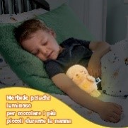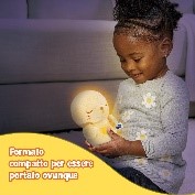 Perla è un morbido peluche luminoso pensato per coccolare i più piccoli durante la nanna, i momenti di relax e di conforto. La forma compatta e la presa facile lo rendono adatto fin dai primi mesi. Il pulsante Luna luminoso attiva dolci melodie rilassanti e una luce rassicurante che si diffonde all’interno del peluche, creando un’atmosfera calma e serena. Grazie al suo formato compatto, può essere portato ovunque e tenuto facilmente tra le braccia al momento del riposo.