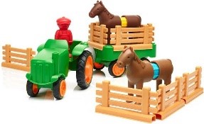 I più piccoli si divertiranno un mondo con questo trattore e rimorchio SmartMax. Tante avventure da vivere! Grazie a SmartMax, il tuo piccolo potrà assemblare il suo primo trattore. Inoltre, potrà combinare ogni pezzo come preferisce. Perché non abbinare la testa del cavallo al retro del trattore? I più fantasiosi potranno dare vita a un trattore e a tanti simpatici animali! Grazie alle barre magnetiche e alle sfere metalliche, tutto è semplicissimo.