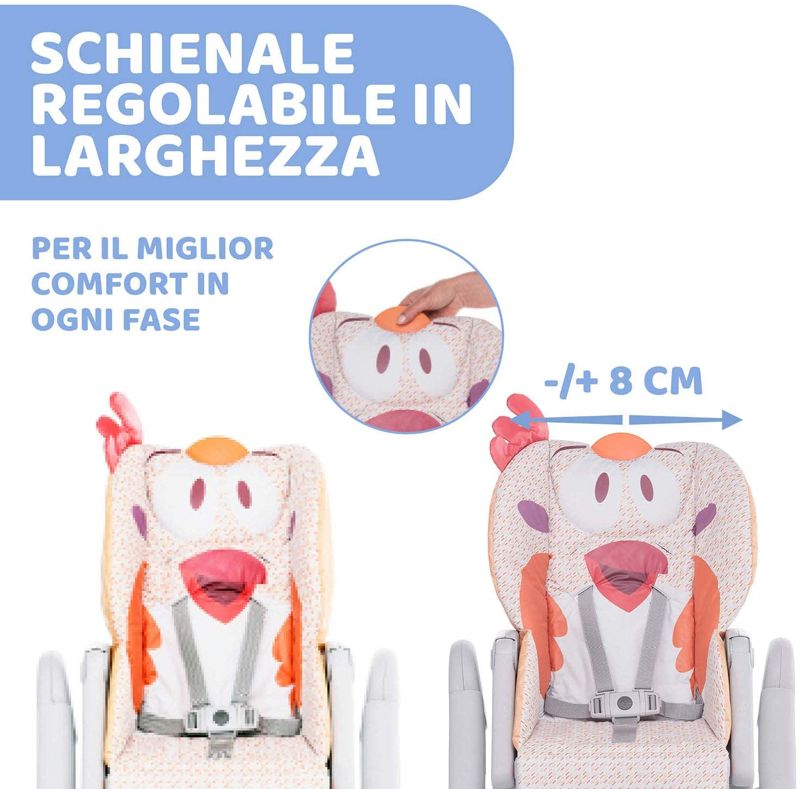 - PRATICO E REGOLABILE: Gli 8 livelli di regolazione in altezza permettono di adattare il seggiolone alla giusta altezza per il bambino; una volta chiuso è molto compatto e può essere riposto facilmente
