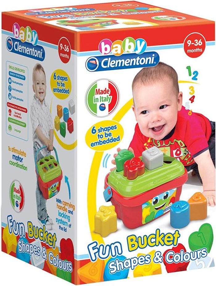 Un divertente secchiello incastraforme con 6 formine diverse da inserire e recuperare, per divertirsi a riconoscere i primi numeri, forme e colori.