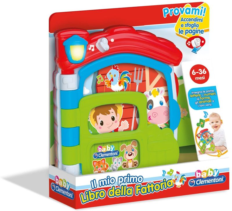 Girando le pagine e premendo il tasto luminoso sul tetto della fattoria, il bambino potrà conoscere gli animali e i loro versi, scoprire le prime lettere, i numeri e le forme