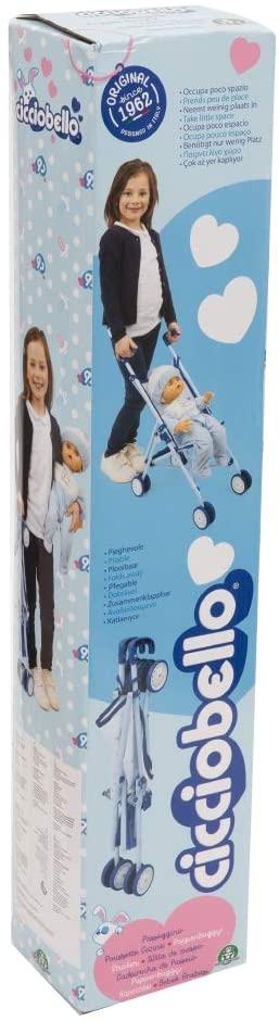 Porta in giro il tuo Cicciobello con il suo passeggino. L'articolo ha ruote funzionanti, personalizzato con il logo e la mascotte del coniglietto di Cicciobello. La struttura è realizzata in metallo, con seduta in tessuto personalizzato a marchio Cicciobello. Il passeggino è pieghevole: facile da riporre e trasportare. Dimensioni: altezza circa 60 cm e larghezza di circa 40 cm. Articolo compatibile con tutte le bambole della linea.