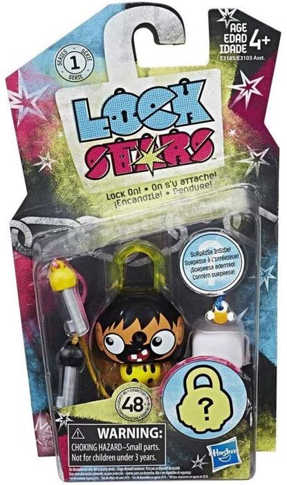 Ogni personaggio Lock Stars include 2 chiavi, 2 amuleti, 1 dei quali nascosto nel pancino; e 1 mini lucchetto misterioso da compagnia. Prendi la chiave, apri il personaggio e scopri la sorpresa nascosta nel suo pancino. E per rendere l’attesa ancora più emozionante, i mini lucchetti da compagnia sono assortiti in maniera casuale, così i bambini avranno ogni volta una sorpresa. La collezione completa comprende 24 personaggi differenti: prova a completarla tutta, fai cambio dei personaggi doppi con i tuoi amici e prova a combinare tutti i mini lucchetti con i personaggi Lock Stars corrispondenti. Applica tutti questi accessori di moda sullo zaino, ai lacci delle scarpe o dove ti detta la fantasia, e cerca il lucchetto “superstar . La serie 1 comprende 24 personaggi Lock Stars e 24 mini lucchetti da compagnia, tutti da collezionare.