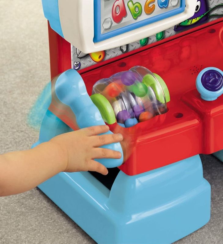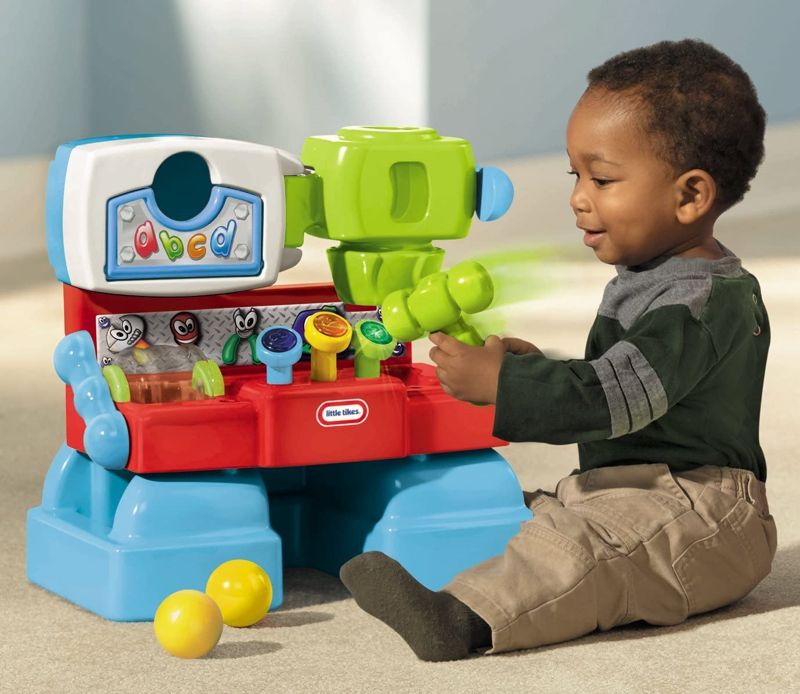 Banco da lavoro dotato di piccole attività manuali, luci e suoni. Accessori inclusi: martello e due palline.Gira la manovella e fate risuonare le palline. Utilizza il martello e innesca emettere suoni divertenti. Necessita di 2 batterie AA