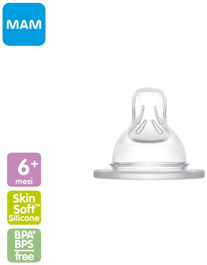 Pratica tettarella – questa tettarella mam viene fornita in comodo set da 2 ed è perfetta per ogni biberon o bottiglia mam dall'imboccatura larga e per le tazze mam trainer